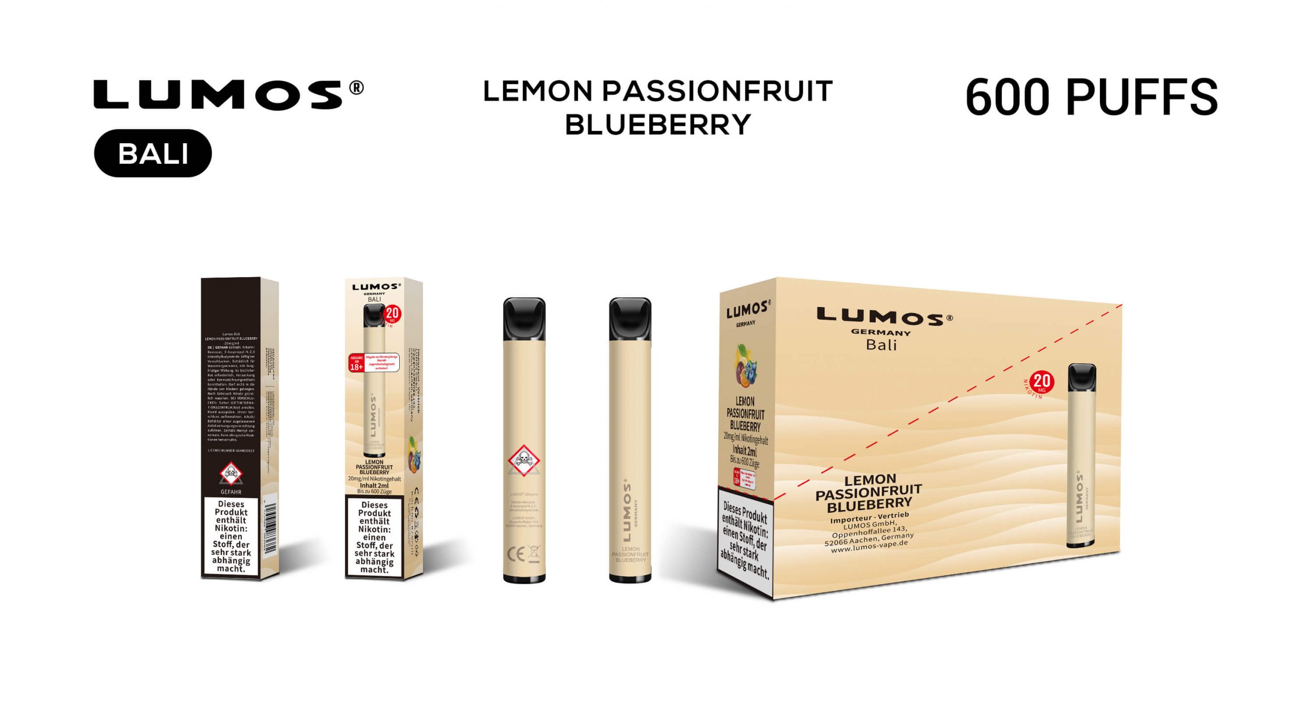 Erleben Sie den köstlichen Geschmack von Lemo Passionfruit Blueberry. Süßer Geschmack aus der Kindheit für ein einzigartiges Dampferlebnis.